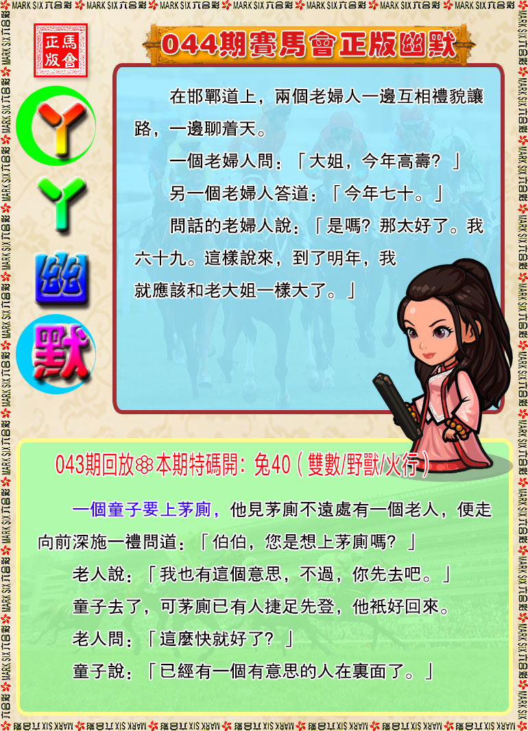044期:跑狗玄機/密圖詩/粤彩三语/特碼后语/另版四字梅花诗/藏寶圖